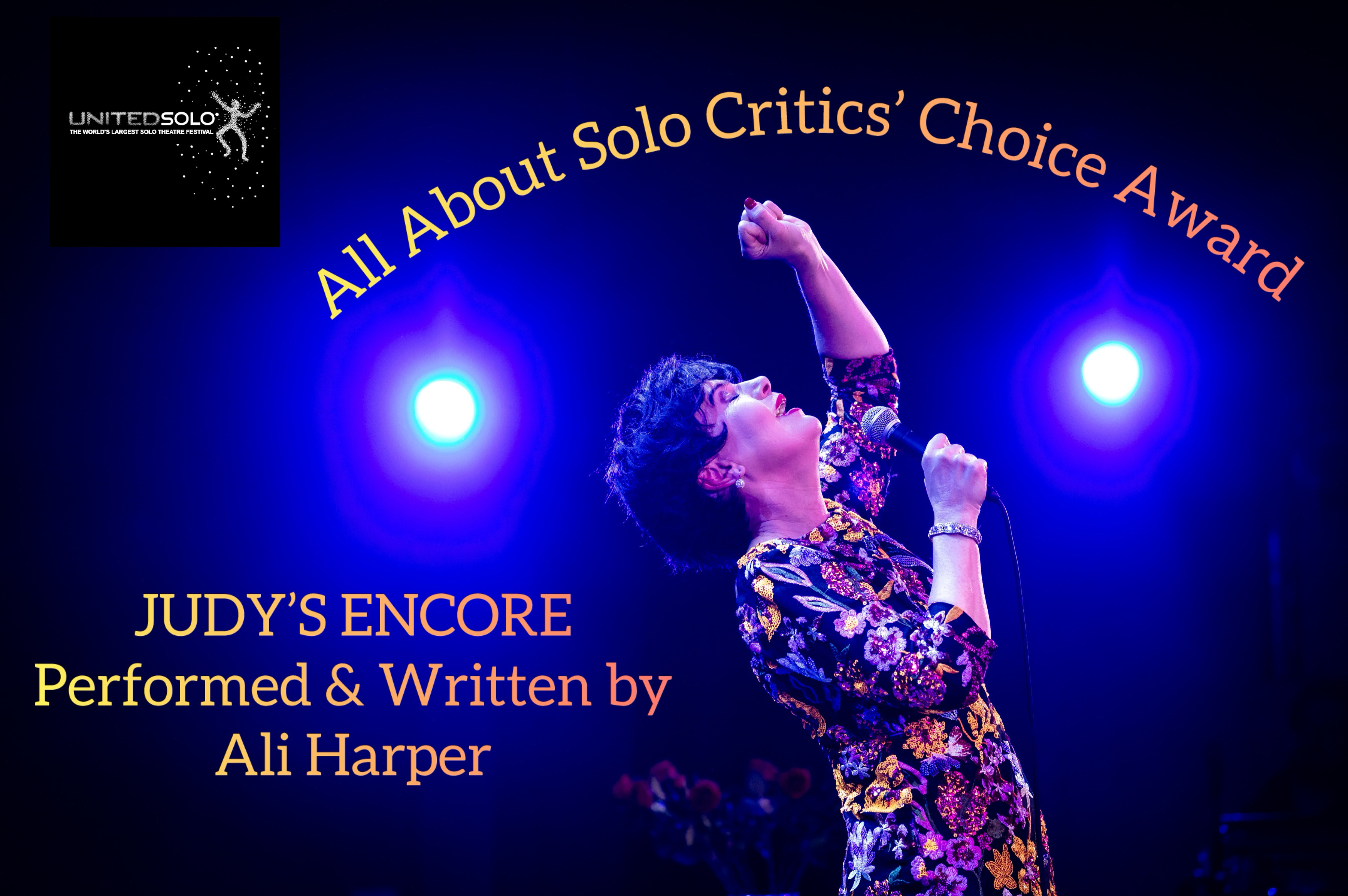 JUDY'S ENCORE was awarded the ALL ABOUT SOLO CRITICS' CHOICE AWARD at the United Solo Festival in New York - November, 2025